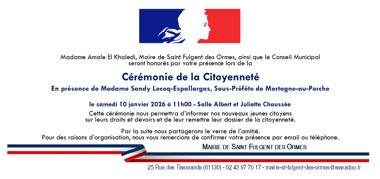 Le 10 janvier 2026 à 11h00 : Cérémonie de la Citoyenneté