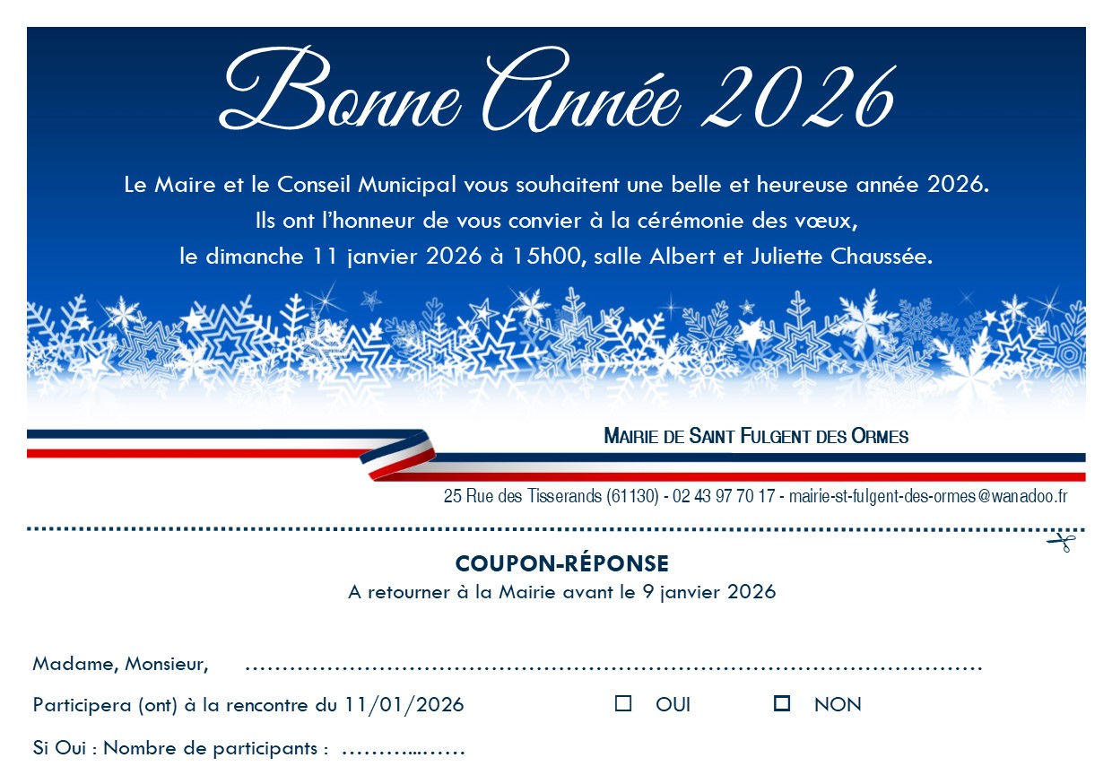 Madame Amale El Khaledi, Maire de Saint Fulgent des Ormes, ainsi que le Conseil Municipal seront honorés par votre présence lors de la